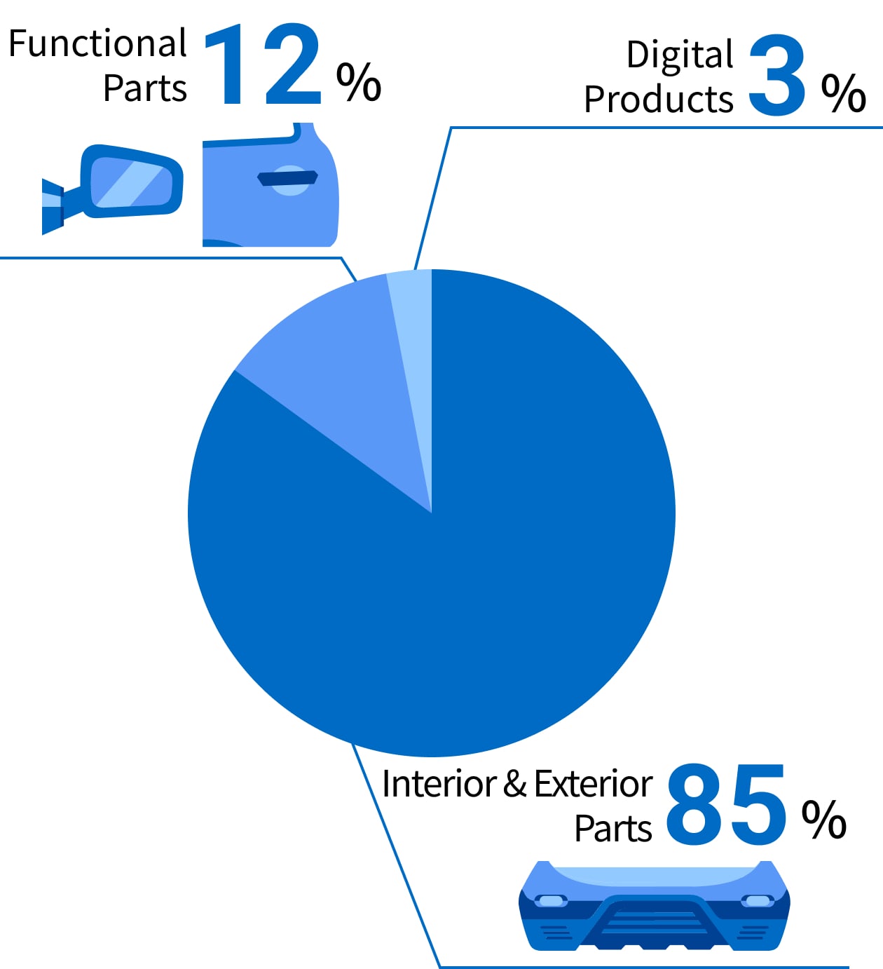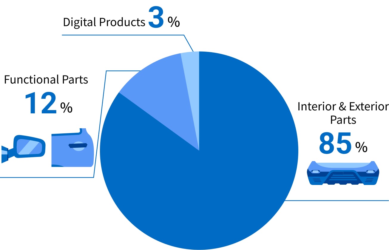 Sakae Riken Kogyo Co., Ltd., a leading Tier 1 automotive parts supplier, proudly serves all major Japanese automobile manufacturers. We offer an extensive array of products designed to address the evolving trends of the automotive industry. Our product line includes essential components such as front grille garnishes—which play a key role in defining a vehicle's identity—along with door mirrors and door handles. We are also committed to delivering advanced solutions, including electronic mirrors equipped with camera monitoring systems and millimeter-wave-compatible emblems, to meet the industry's evolving needs as it transitions toward autonomous driving technology.