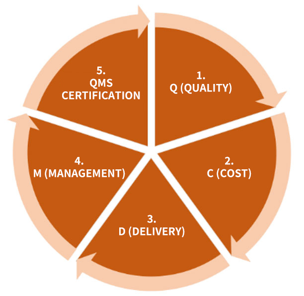 New suppliers are evaluated based on their total score for each item in the chart below. The outcome will determine whether they are registered as certified suppliers.